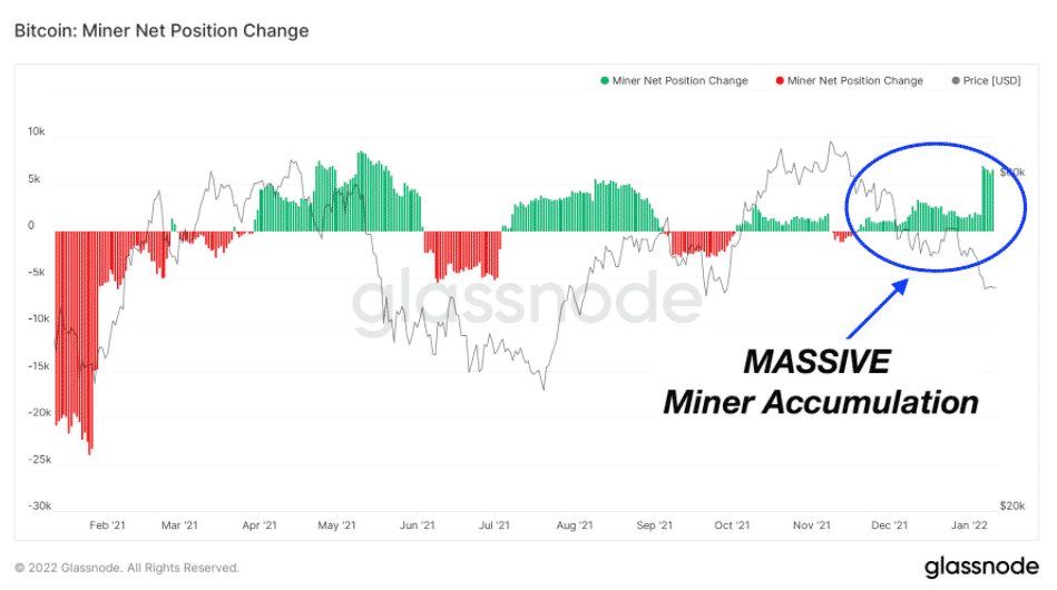 Analytická spoločnosť Glassnode, ktorá analyzovala svoj indikátor čistej pozície baníkov 11. januára, odhalila to, čo populárny twitterový účet Bitcoin Archive opísal ako „masívne” hromadenie ťažiarov.