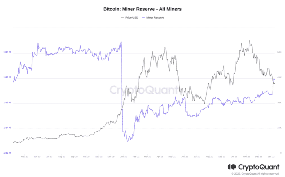 Okrem ostrieľaných hodlerov teraz nie sú výnimkou ani ťažiari, ktorí v prvých dvoch týždňoch roku 2022 značne zvyšujú svoje držby BTC.