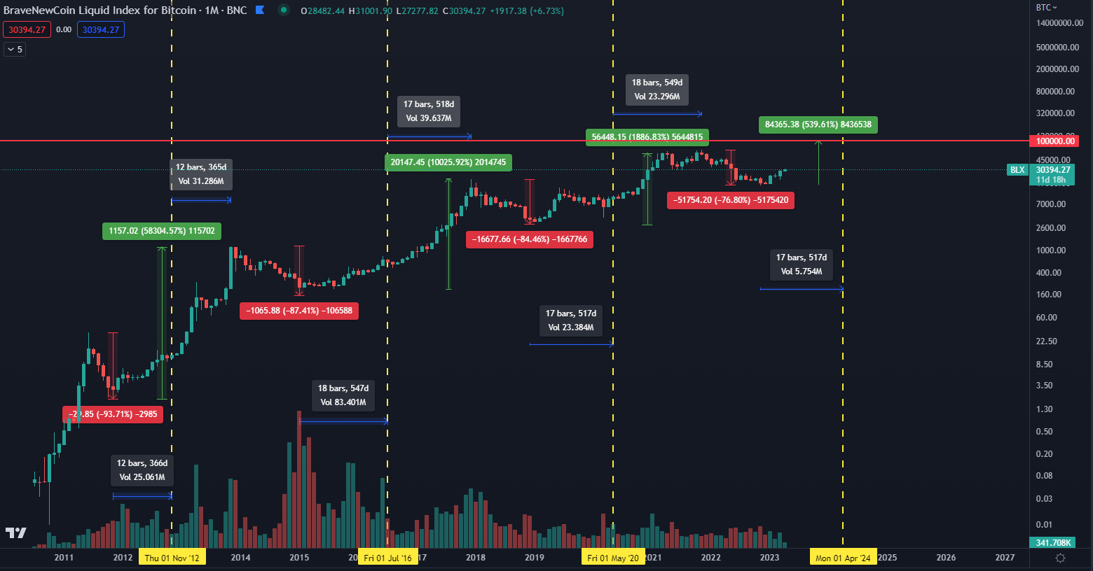 Z toho vyplýva, že v súčasnom rastúcom cykle môže BTC vytvoriť maximum aj vyššie ako na hladine 100 000 dolárov. V čase písania článku sme približne 1 rok od halvingu, ktorý by mal priniesť ďalšie vytvorenie rastúceho trendu pre bitcoin a kryptomenový trh.