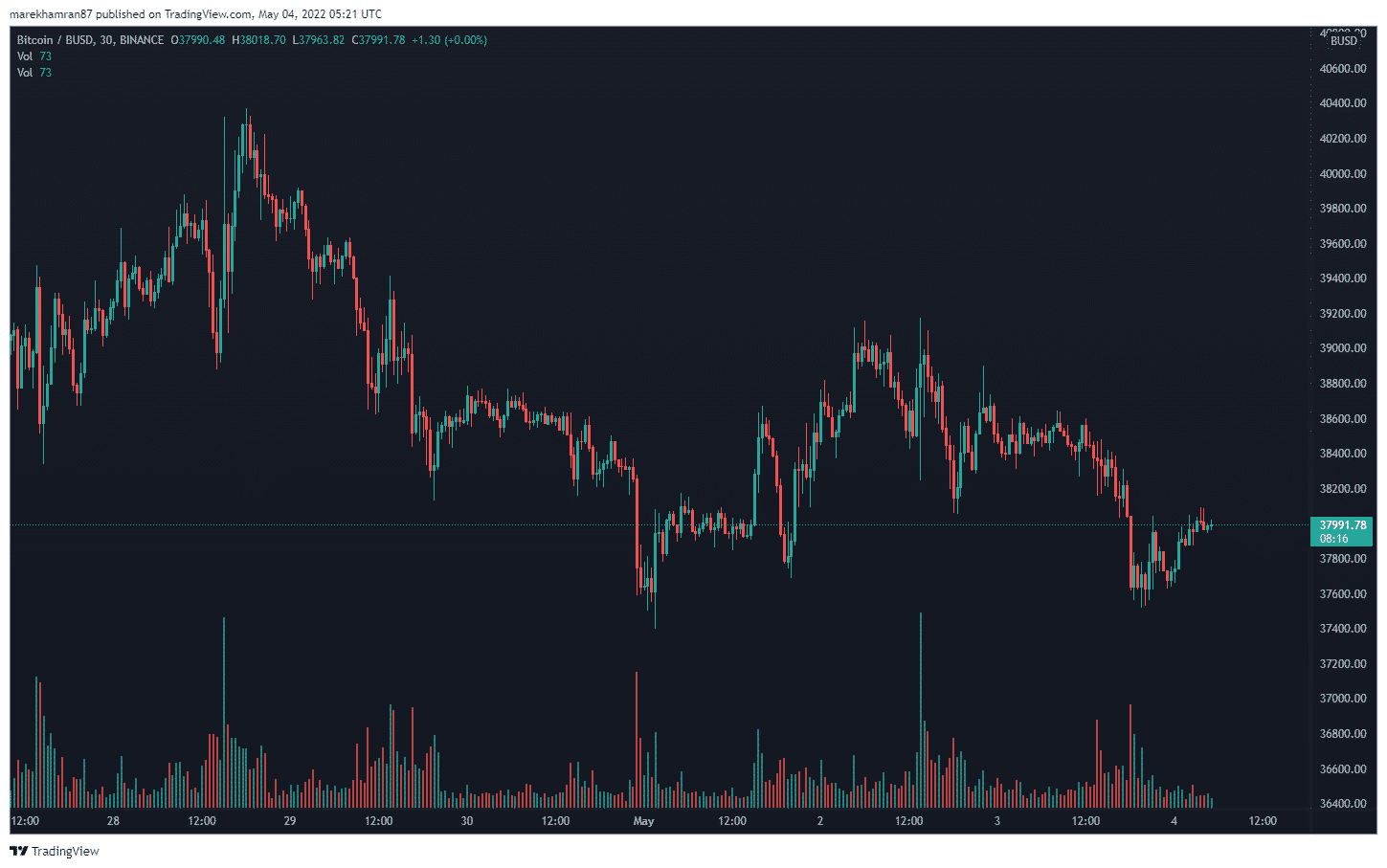 Ak by ste sa chceli orientovať na tieto dva indikátory, je potrebné sledovať, či sa ponuka v zisku dostane pod hranicu 50 %. V čase písania tohto článku sa cena BTC pohybovala na úrovni 37 992 USD.