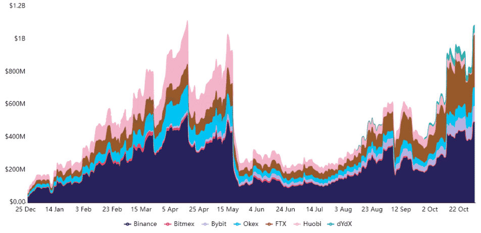 Signalizuje súčasná 1 miliarda dolárov otvoreného záujmu o futures Polkadot potenciálny krach, alebo to bude tentokrát inak? Ako už bolo vysvetlené, metriku otvoreného záujmu nemožno považovať za býčiu alebo medvediu. Aby sme pochopili, či obchodníci s derivátmi používajú nadmerný pákový efekt, mali by sme analyzovať údaje o trvalých futures kontraktoch.