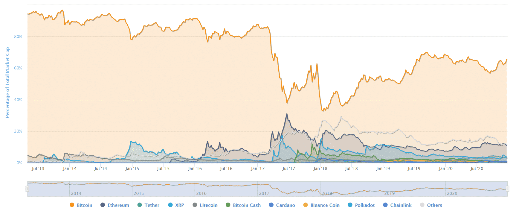 BTC dominancia za posledné mesiace rastie, podobne ako tomu bolo v lete 2019. Cena bitcoinu dosahuje nové hodnoty ATH, pričom sa súčasné hodnoty altov ani zďaleka svojim ATH nepriblížili. Začnú sa prelievať zisky z BTC do altov? A ak áno, kedy to bude?