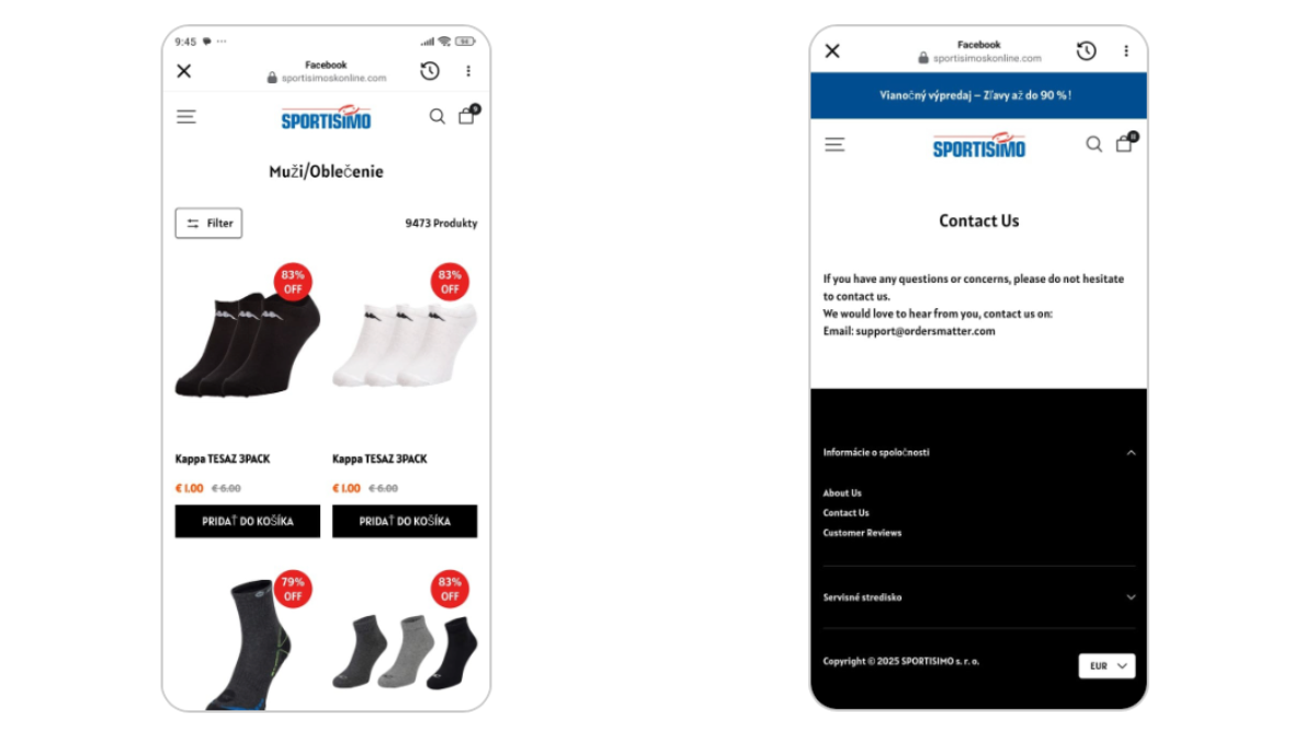 Podvodníci sa opäť snažia oklamať Slovákov cez internet. Tentoraz pomocou webových stránok, ktoré sa tvária ako oficiálny e-shop športovej značky Sportisimo, a šíria ich najmä na sociálnych sieťach. Tieto stránky sľubujú neuveriteľné ceny, no za nimi sa často skrýva čistý podvod, varuje samotná spoločnosť.