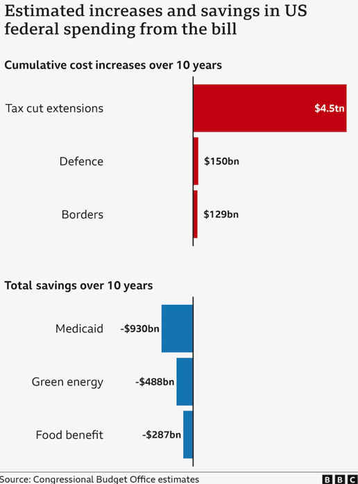 Zákon ako celok zvýhodňuje vyššie príjmové skupiny – predlžuje alebo zavádza nové daňové úľavy – ale zároveň obmedzuje napríklad prístup k zdravotnej starostlivosti pre menej majetných Američanov. Celkové náklady na tieto zmeny odhaduje americký rozpočtový úrad na 3,3 bilióna dolárov za 10 rokov.