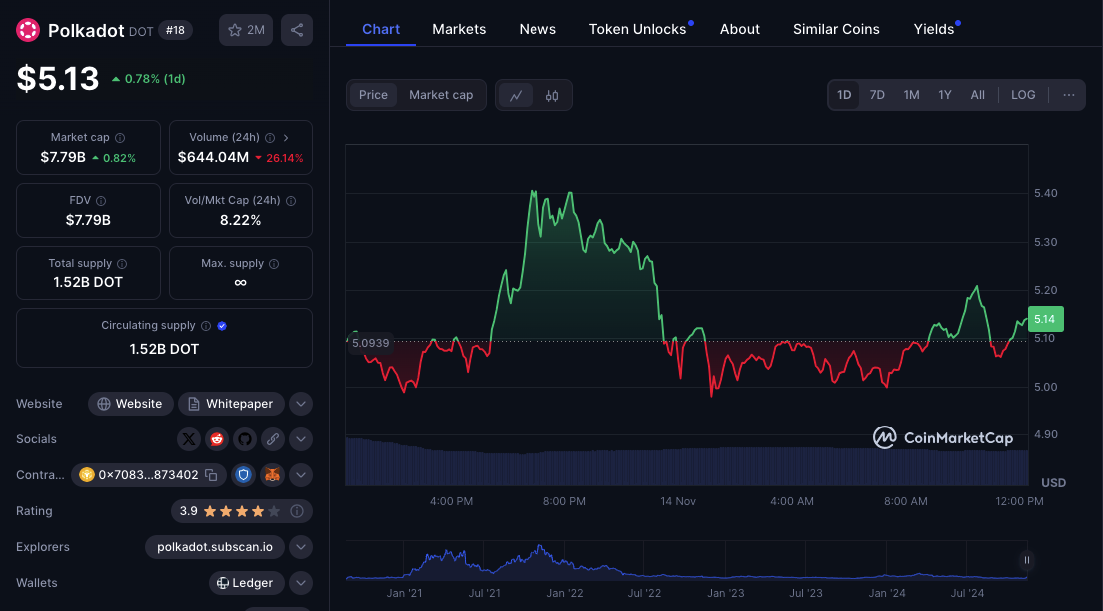 Polkadot je jedinečný typ blockchainu. Spája iné blockchainy, ako Ethereum a Bitcoin, aby bezpečne zdieľali dáta. Toto prepojenie robí Polkadot rýchlejším a umožňuje mu spracovať viac transakcií než mnoho iných sietí. Využíva niečo, čo sa nazýva parachainy, ktoré pomáhajú zvyšovať rýchlosť a znižovať náklady. DOT token sa používa na to, aby sa ľudia mohli podieľať na riadení a hlasovaní o rozhodnutiach. Vytvorený Gavinom Woodom, spoluzakladateľom Etherea, Polkadot sa snaží o spoluprácu rôznych blockchainov. S každým vylepšením posilňuje svoju pozíciu ako kľúčová súčasť blockchain sveta.