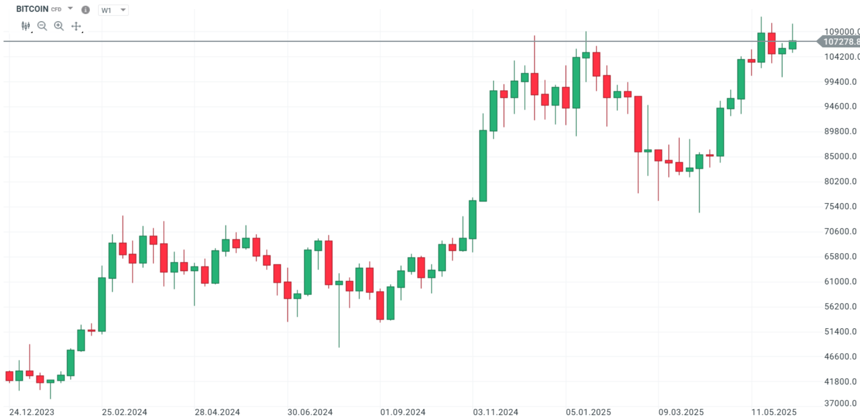 Bitcoin vstúpil do tohto roka s novým historickým maximom 108 000 dolárov, ale po colnej hrozbe sa v priebehu niekoľkých týždňov prepadol na 74 000 dolárov. Dnes sa opäť obchoduje okolo tohto maxima.
