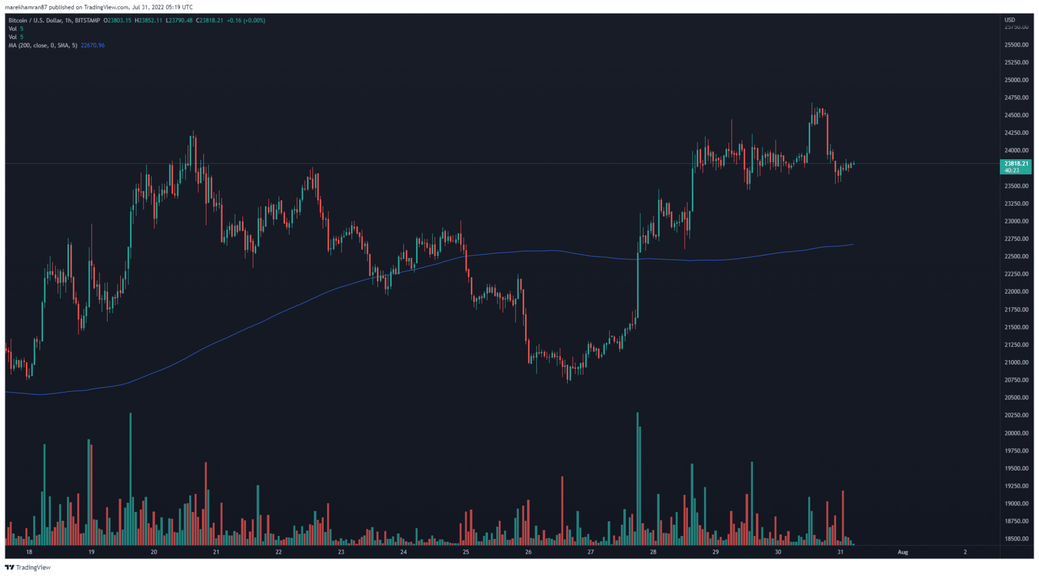 V čase písania tohto článku sa Bitcoin obchodoval na úrovni 23 818 dolárov. Aj napriek pomerne silnému rastu za posledný týždeň Vays neverí, že sa Bitcoinu podarí prelomiť ďalšie dôležité hranice. Podľa jeho názoru dokonca môže prísť k prepadu až na 14 000 USD.