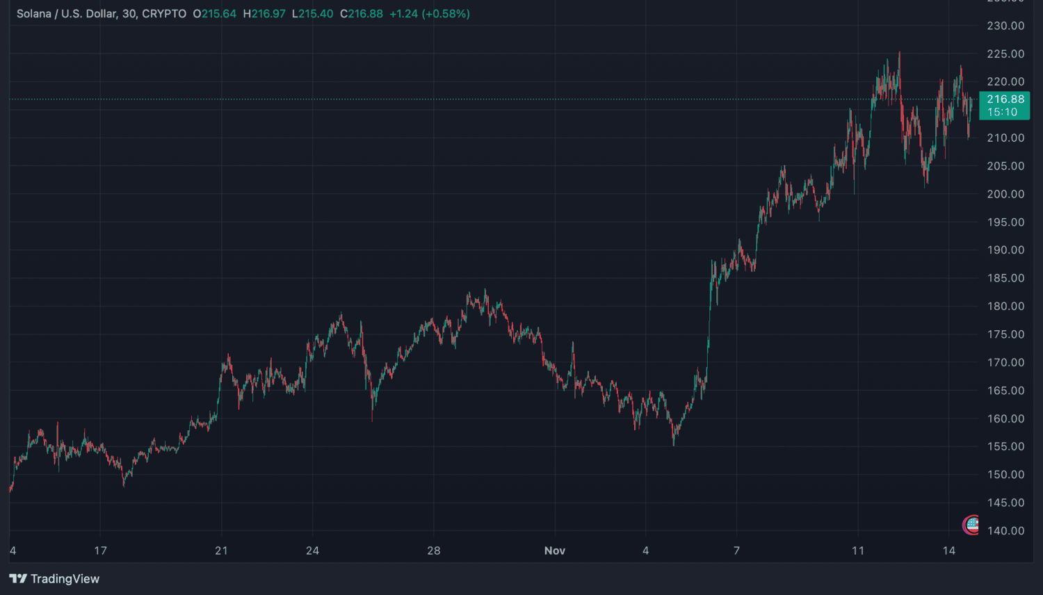 Solana za posledný mesiac porástla. Zdroj: TradingView