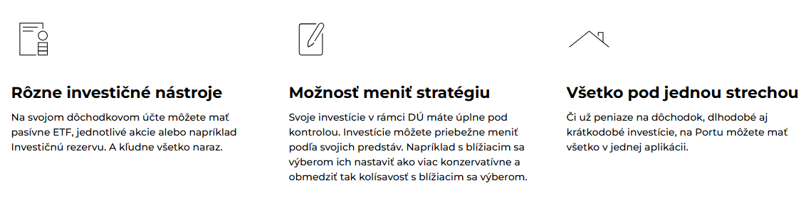 Portu vás prevedie jednoduchými otázkami zacielenými na to, koľko si chcete sporiť na dôchodok. Následne vám pripravia stratégiu vhodnú presne pre vás. Prostriedky na dôchodkovom účte sú a vždy aj budú len vaše a dokonca sa aj efektívnejšie zhodnocujú.