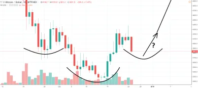 René z Trading11 už včera spomínal formáciu H&S. V tej dobe bol Bitcoin ešte na 4200 $. Vytvorené bolo prvé rameno a hlava. Nasledovať malo vytvorenie druhého ramena. Na burze Bitfinex by toto rameno mohlo mohlo dosiahnuť až hladinu 3700-3650 $.