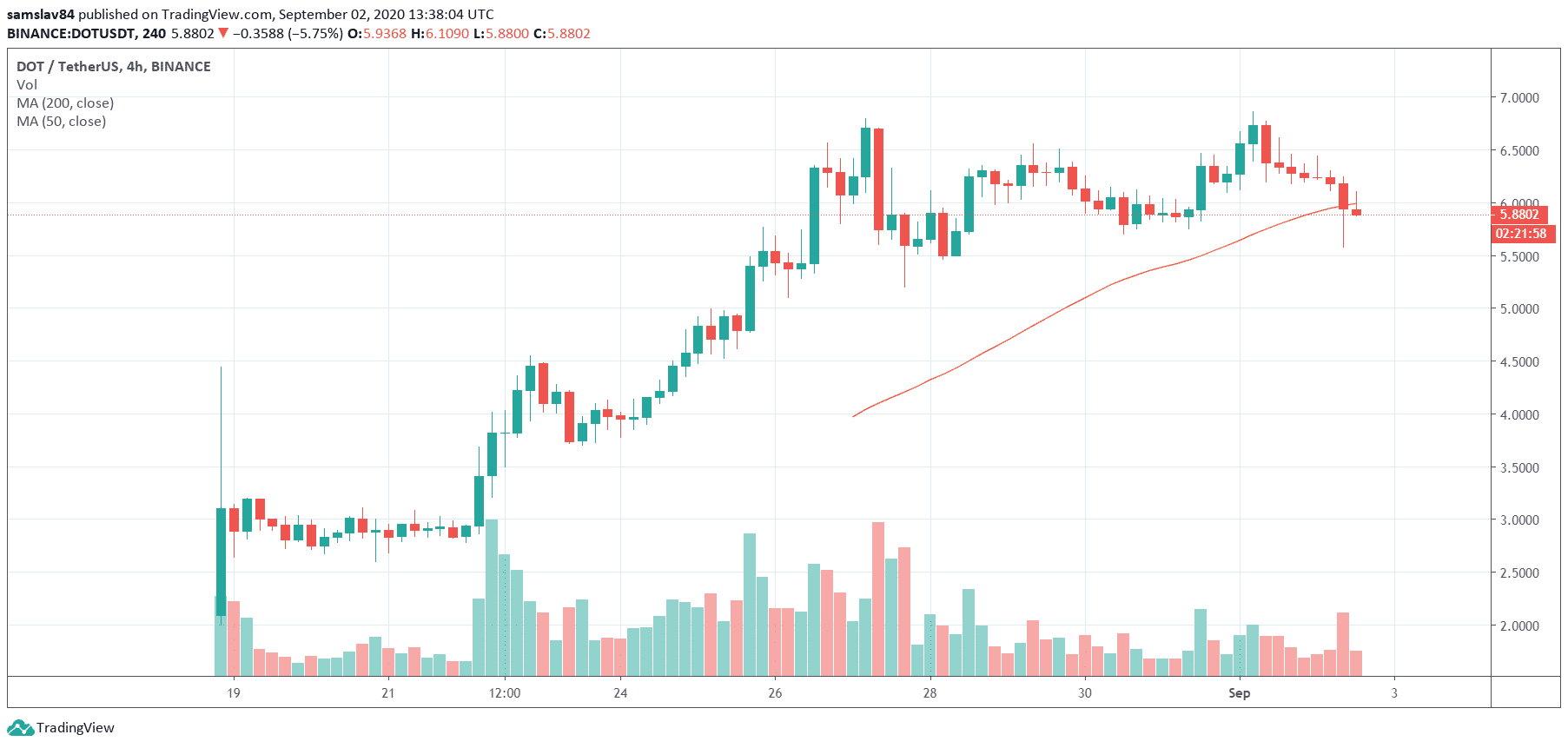 4h DOT/USDT – Binance
