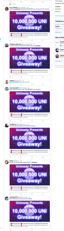 Takto vyzerá najnovší Uniswap scam na Twitteri: