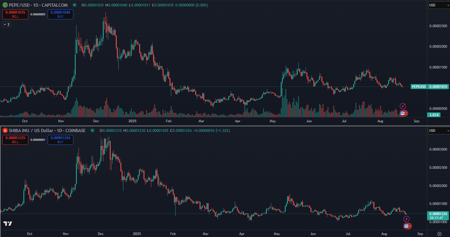 Meme coiny sú v súčasnosti jedným z najdiskutovanejších fenoménov na trhu kryptomien. Ide o aktíva, ktoré síce dokážu krátkodobo zaujať investorov, no z dlhodobého hľadiska často vedú k strate, čo potvrdzujú údaje z TradingView. Tieto kryptomeny nemajú jasný fundament ani využitie, ich cena je poháňaná výlučne špekuláciou a náladou komunity.