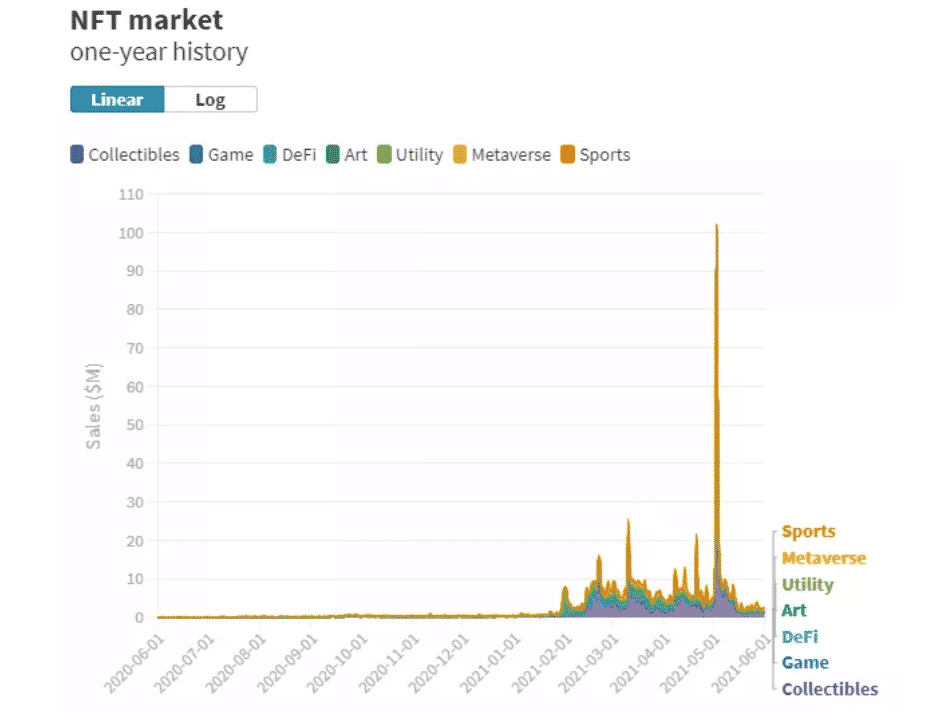 NFT trh – ročná história. Zdroj: NonFungible
