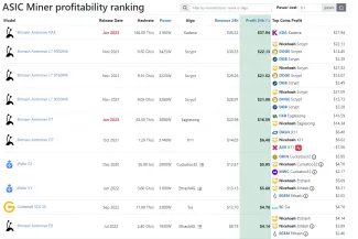 Na jednej strane baníkov trápi cena elektriny, ale na druhej musia myslieť aj na to, že ich ťažobné zariadenia budú pracovať čo najefektívnejšie. Stroje, ktoré stále profitujú pri súčasných vysokých nákladoch, sú zobrazené v tabuľke vyššie.