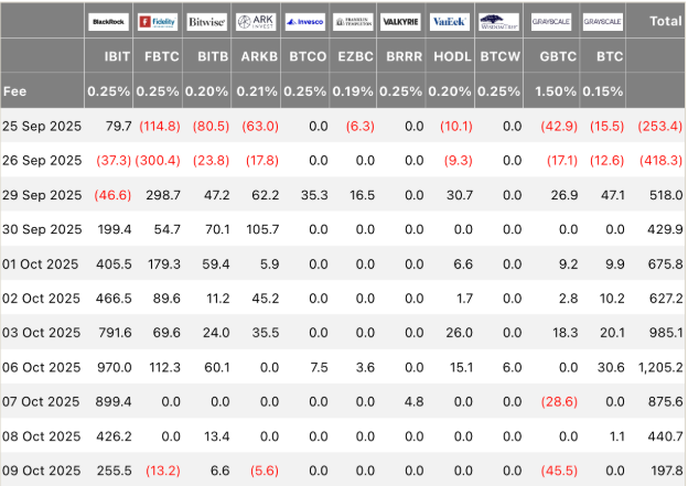 Inštitucionálny záujem sa totiž pomaly zvyšuje. Podľa agentúry Reuters dosiahli globálne prítoky do krypto ETF začiatkom októbra 2025 hodnotu 5,9 miliárd dolárov. On-chain dáta ukazujú zmiešané správanie veľrýb. Niektoré inštitúcie však v Q3 nakúpili viac ako 53 000 BTC.