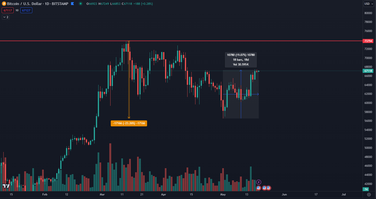 Obchodníci s kryptomenami si zrejme mohli za posledné týždne všimnúť, že Bitcoin jasne dominuje. Najväčšia kryptomena vytvorila korekciu 23 %, zatiaľ čo väčšina altcoinov klesla o viac ako 50 %. Avšak, Bitcoin ukazuje silu aj počas vzostupu. Za posledné 3 týždne totiž stúpol o takmer 20 %, no mnohé ďalšie kryptomeny sa nevedia spamätať.