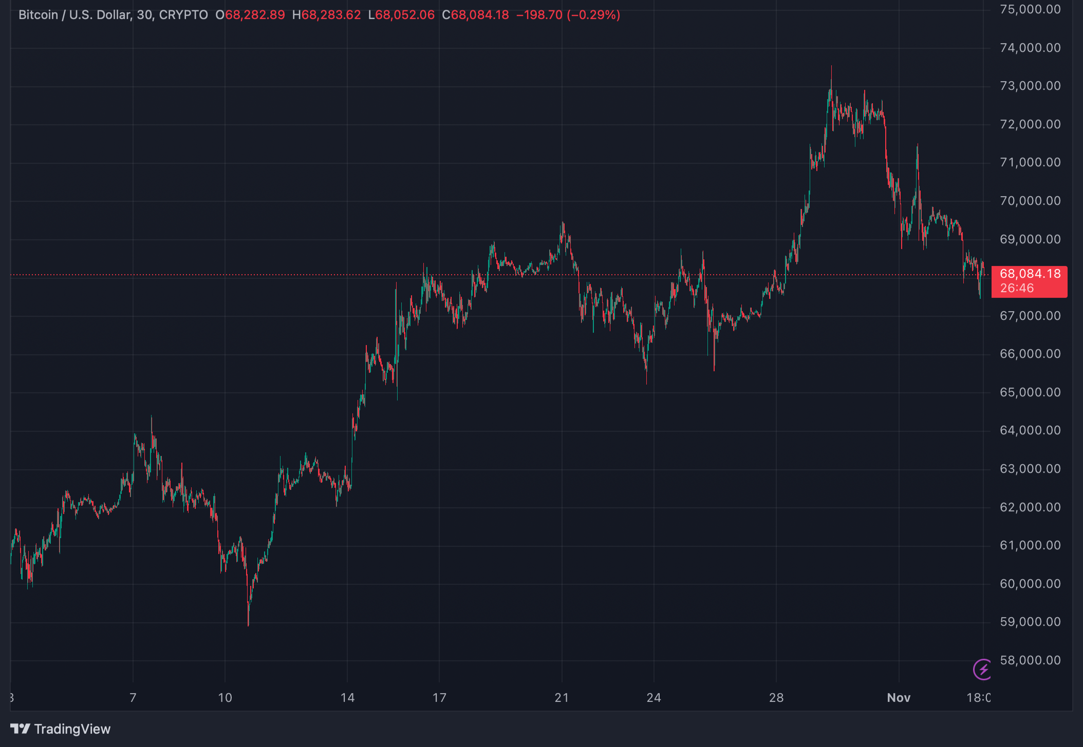 Bitcoin sa obchoduje medzi 65664,21 a 69840,80 dolármi. Za posledný týždeň jeho cena vzrástla o 6,93 % a za posledný mesiac o 9,75 %. Najbližšia úroveň odporu je na 71709,53 dolároch. Ak Bitcoin prekoná túto úroveň, mohol by vystúpiť k ďalšiemu odporu na 75886,12 dolároch.