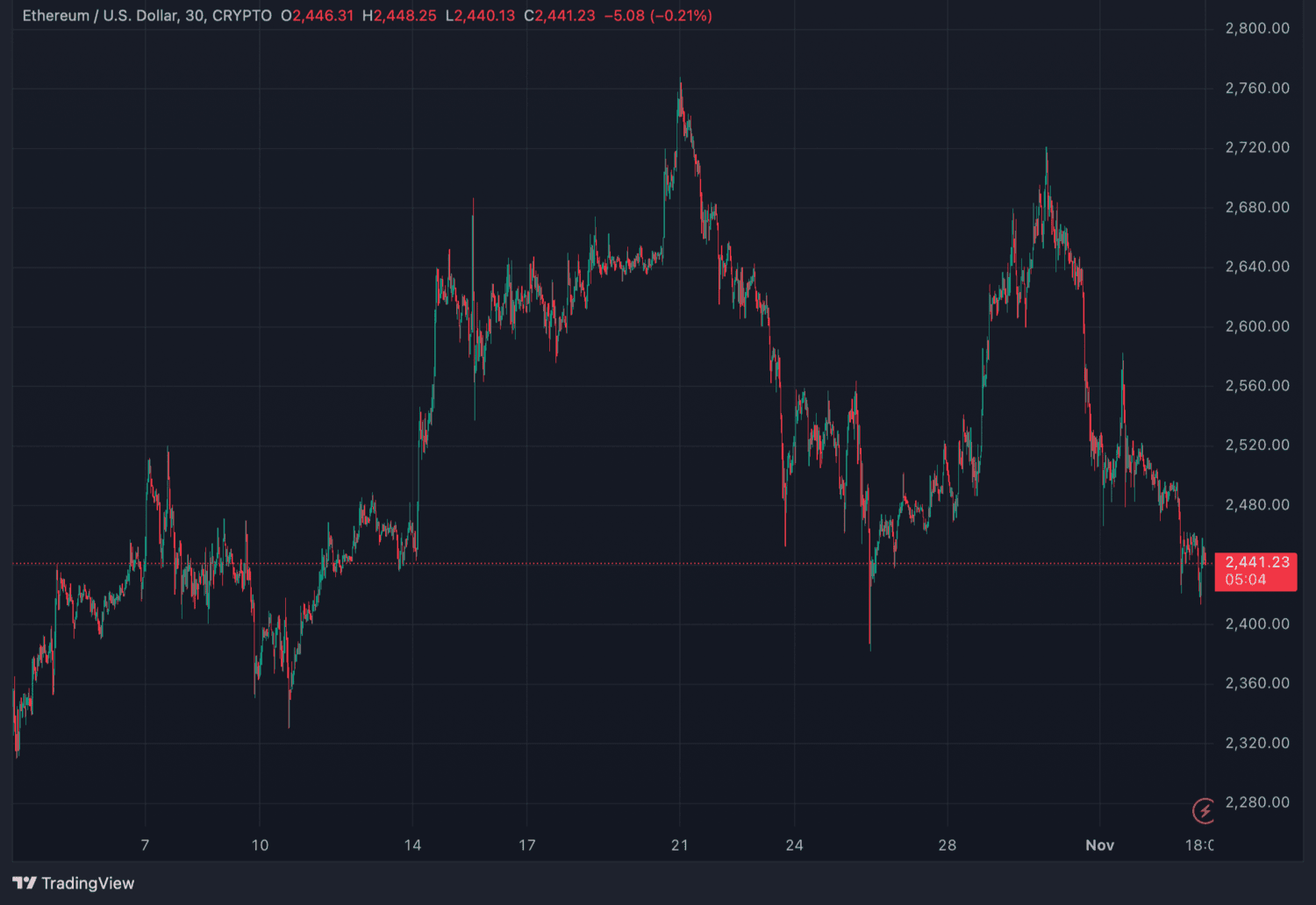 Ethereum (ETH) sa obchoduje medzi 2335,28 a 2722,22 dolármi. 10-denný priemer je 2661,93 dolárov, čo je nad 100-denným priemerom 2544,99 dolárov. To naznačuje, že cena môže rásť. Index relatívnej sily (RSI) je 59,15, čo naznačuje, že minca nie je prekúpená. Ďalšia úroveň odporu je na 2938,71 dolároch. Ak ETH dosiahne túto úroveň, mohlo by vystúpiť na 3325,65 dolárov, čo predstavuje nárast približne o 22 %.