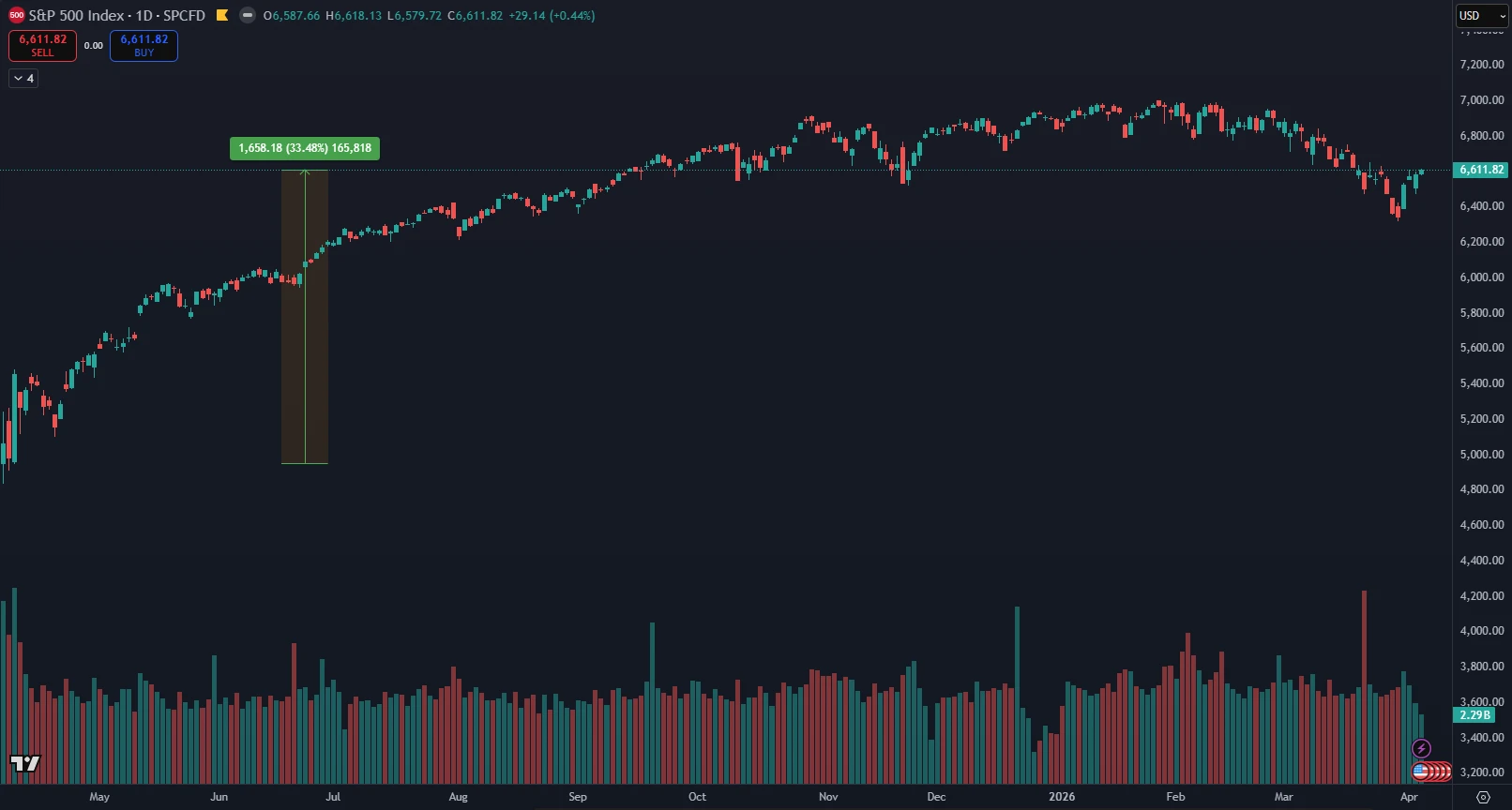 Zhodnotenie akciového ETF po 1 roku. Zdroj: tradingview.com