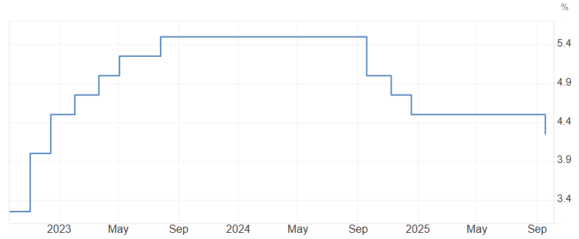 Úroková sadzba v USA klesá. Zdroj: tradingeconomics.com