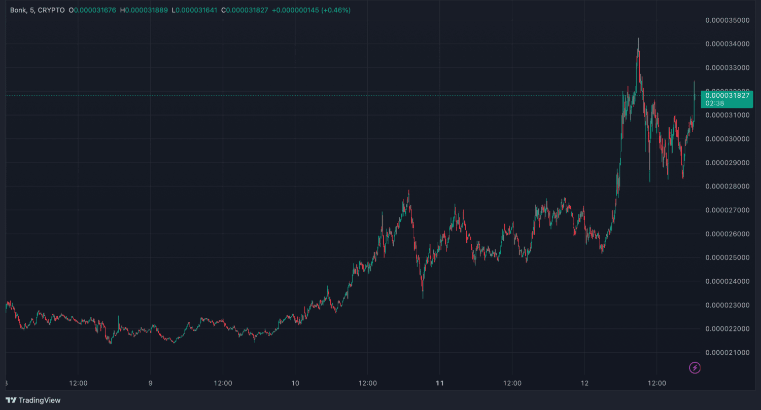 BONK je memecoin na blockchaine Solana s maskotom Shiba Inu. Jeho cieľom je posilniť komunitu Solana presunutím moci od venture capital tokenov. Po uvedení na Coinbase hodnota BONK vzrástla o viac ako 100 %. Minca slúži ako komunitné aktívum, distribuujúc 50 % svojej ponuky účastníkom v sektoroch NFT a DeFi Solany. Do polovice decembra 2023 sa BONK stal tretím najväčším memecoinom podľa trhovej kapitalizácie, s nárastom o viac ako 10 000 % od začiatku roka. Napriek výzvam, ako je jeho veľká celková ponuka a volatilita bežná pre memecoiny, integrácia BONK do ekosystému Solana a spustenie burzy BonkSwap zdôrazňujú jeho potenciál. V súčasnom trhovom cykle sa BONK javí ako atraktívna možnosť.