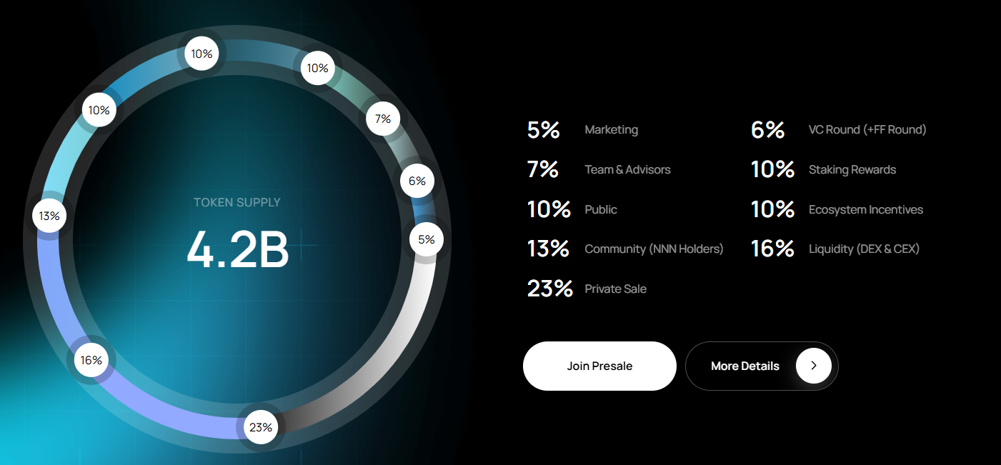 Predpredaj tokenu NNN je navrhnutý tak, aby odmeňoval skorých podporovateľov a zabezpečil stabilný rast hodnoty tokenu. S celkovou ponukou 4,2 miliardy tokenov a jasne definovanými fázami predaja kladie NNN dôraz na dlhodobú udržateľnosť a zapojenie komunity. V tomto článku si predstavíme token NNN a jeho predpredaj.