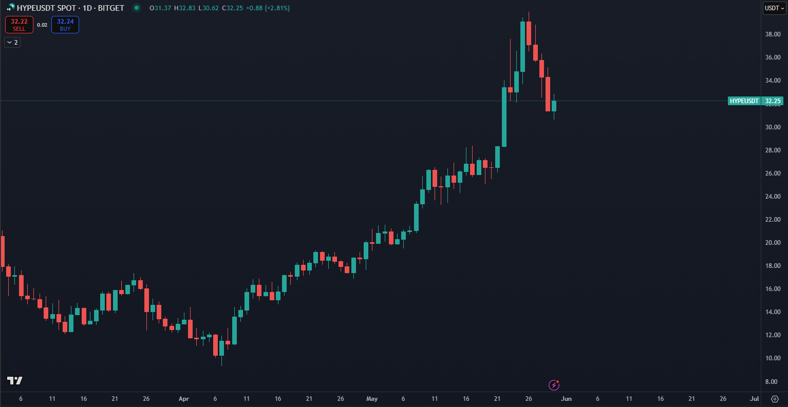 Token HYPE zaznamenal prudký nárast ceny o 327 % za 50 dní, čím dosiahol svoje historické maximum. V uplynulom týždni však došlo k miernej korekcii, čo je bežný jav po výraznom raste, keď investori vyberajú zisky a trh sa stabilizuje.