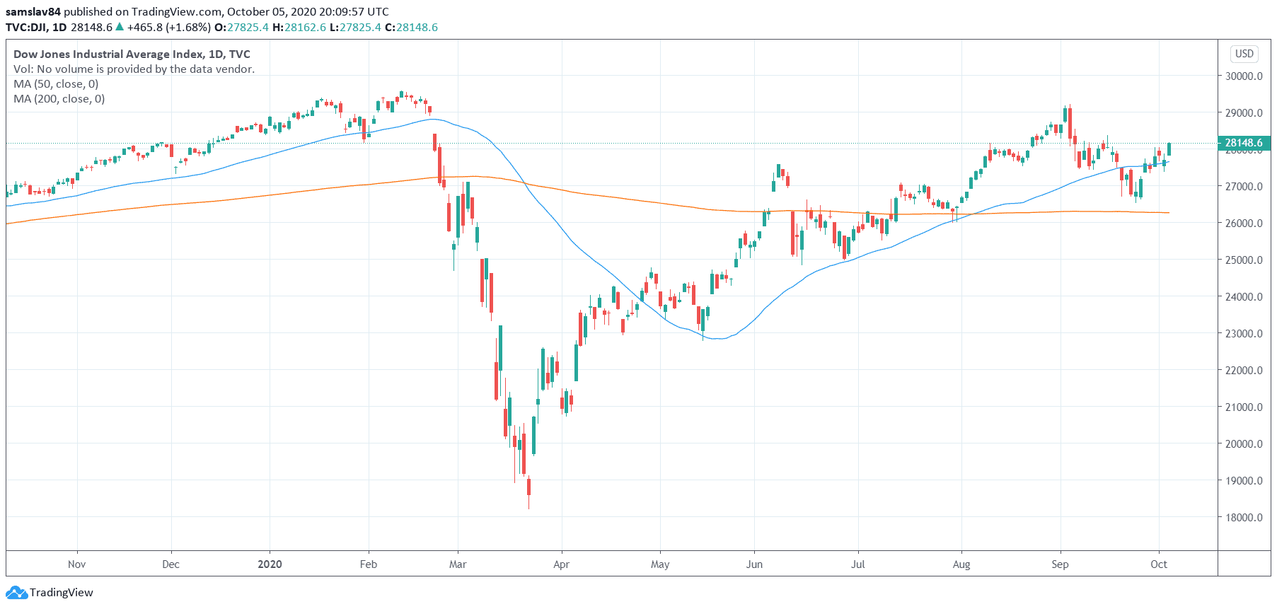 Americké akciové indexy na začiatku týždňa zaznamenali slušný rast. Analytici udávajú mnoho dôvodov od zlepšujúceho sa stavu Donalda Trumpa až po zvyšujúci sa náskok Joa Bidena v amerických prezidentských voľbách. Dnes však narazili na silnú rezistenciu.