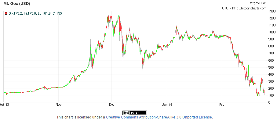 Cena tejto digitálnej meny však v nasledujúcich mesiacoch na MtGoxe klesla na nulu. Burza oficiálne skrachovala a množstvo jej používateľov dodnes nedostalo späť svoje peniaze.