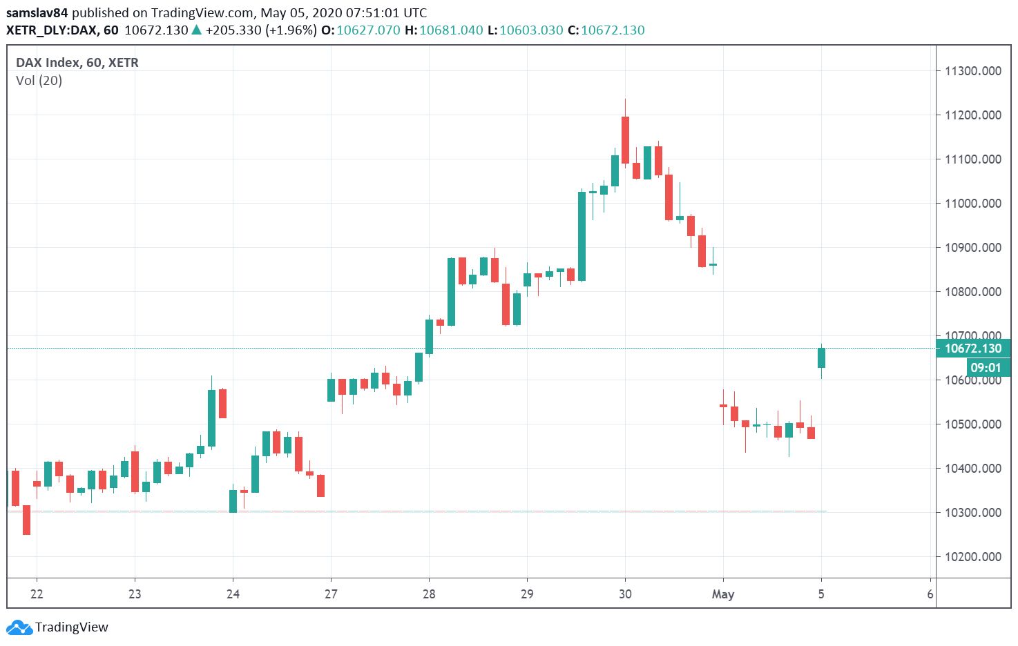 Kryptomeny včera mierne klesli aj preto, že padali akcie. Dnes však európske indexy otvorili v zisku. A to poriadnom! Nemecký DAX si okamžite pripísal 150 bodov a ďalej stúpa. Európsky EU50 STOXX je na tom ešte lepšie a za prvú hodinu obchodovania vykreslil krásnu zelenú sviečku. Trh si evidentne ide po gap, ktorý sa vytvoril po včerajšom dumpe.