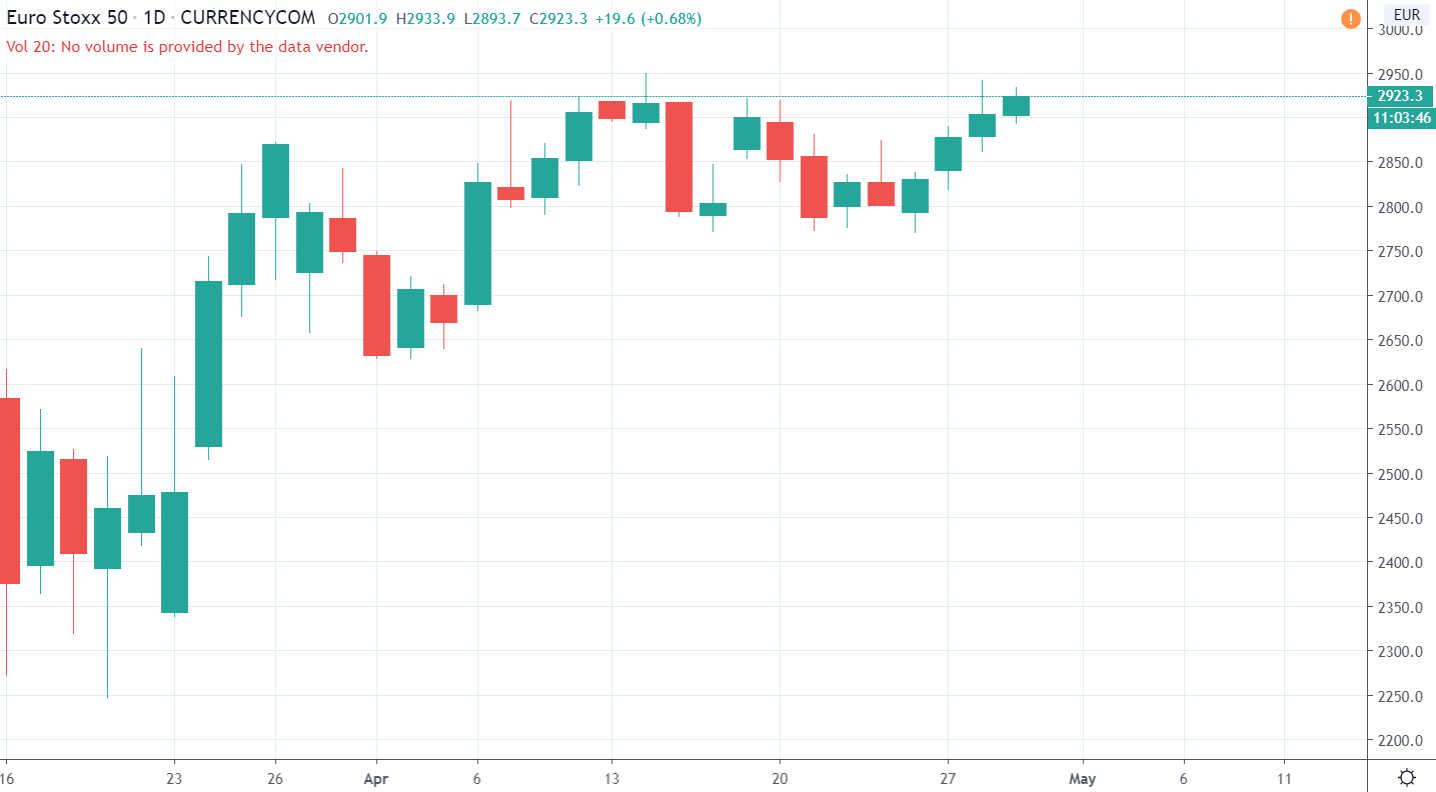 Tak ako tak, Európsky index EU50 STOXX včera rástol a podobne je na tom nemecký DAX. Navyše, v Európe sa už začala aj dnešná trading session a rast pokračuje.