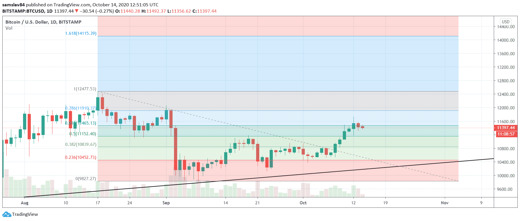 Bitcoin po perfektnom týždni konsoliduje na hladine 11 500 $ a pripravuje sa na ďalší pohyb. Sentiment na trhu je opäť pozitívny, Fear and Greed index ukazuje neutrálnych 53 a do DeFi vstúpila ďalšia miliarda dolárov. Takmer polovica týždňa je už za nami a bude veľmi zaujímavé sledovať, kde nakoniec zavrieme nedeľu.