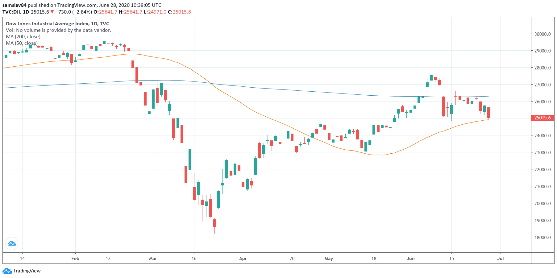 S&P 500 začal týždeň na hladine 3100 bodov a skončil tesne nad 3000. Dow Jones industrial Average je na tom podobne. Celkovo sa teda dívame na stratu 3,3% na akciových trhoch, a to aj napriek neustálej „stimulácii ekonomiky“ zo strany Fedu.
