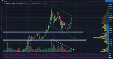 Aj napriek veľmi zložitej korekčnej štruktúre, ktorá dala na seba čakať, sme sa dostali do nášho checkpointu. O tomto targete som hovoril posledné 2 týždne. Kto pravidelne číta moje analýzy na Trading11 , tak bol na tento scenár pripravený. Dnešok bude veľmi dôležitý deň, pretože sme v našej kľúčovej zóne a tu sa bude lámať chlieb. Môžeme očakávať len 2 rôzne scenáre. Silné zamietnutie alebo preraz rezistencie. Objemy sú stále nízke a popravde sa mi veľmi nepáčia. Celý rast od 9 100 až po dnešnú hladinu je sprevádzaný nízkymi objemami.