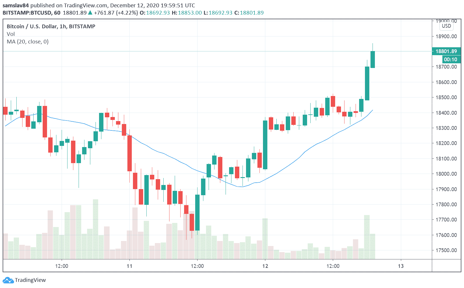 Trh s kryyptomenami začal víkend v zelených číslach. Bitcoin za posledných 24 hodín spravil slušný zisk. Svoju hodnotu zvýšil o 800 $ a klope na dvere hladiny 19 000 $. Ešte v piatok sa pritom obchodoval za 17500 $ a špekulovalo sa, že by mohol ísť ešte nižšie. Zatiaľ to však na červený víkend nevyzerá a pokiaľ budeme pokračovať v nastolenej trajektórii, mohli by sme v priebehu budúceho týždňa otestovať dosiaľ neprekonanú hranicu 20 000 $.