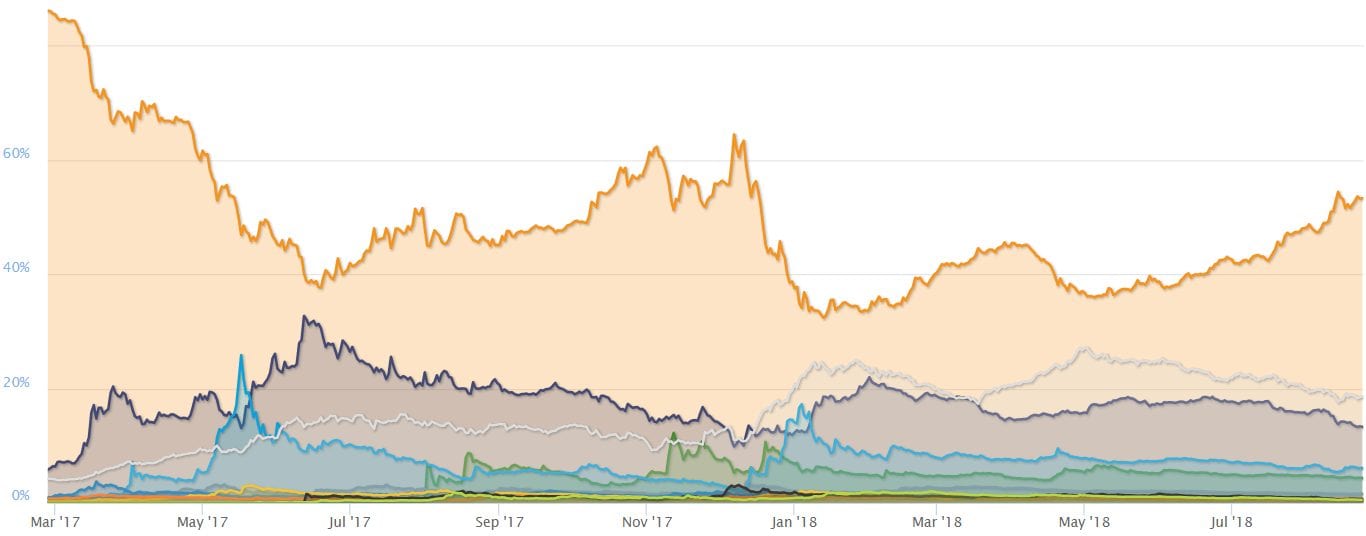 Zaujímavé je, že dominancia Bitcoinu dnes prestala rásť. Oproti včerajšku klesla o 0,2% na 53,3%. Pravdepodobne však ide iba o prechodný jav a čoskoro pôjde hore. Na vstup do trhu s altcoinmi je ešte priskoro.