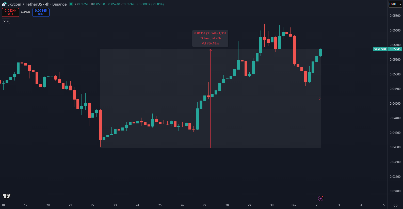Kryptomena SKY je aktuálne najziskovejšia. Zdroj: tradingview.com