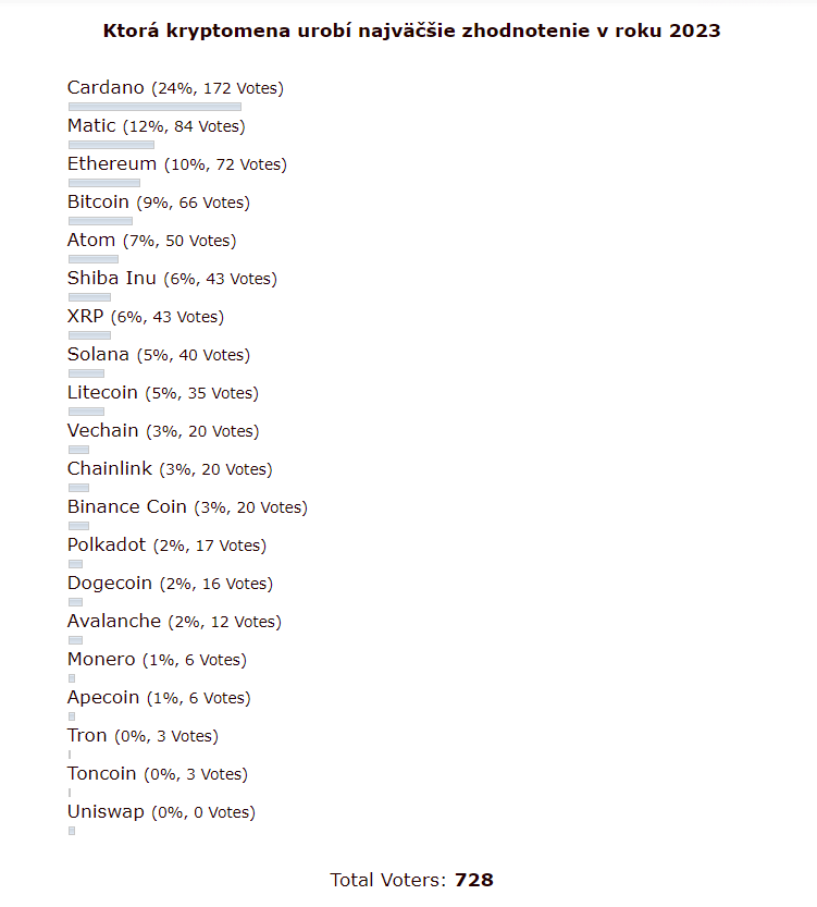 Prekvapivý víťaz, Bitcoinu verí iba 9 % čitateľov. Takto ste hlasovali za top 5 kryptomien na rok 2023