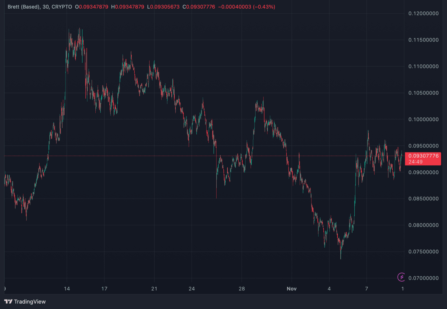 Brett (BRETT) vykazuje silné vzostupné trendy. Obchoduje sa medzi 0,0691 a 0,0977 dolára a blíži sa k odporu na úrovni 0,11 dolára. 10-dňový SMA 0,0923 dolára prevyšuje 100-dňový SMA 0,0840 dolára, čo naznačuje pozitívny momentum. RSI je na úrovni 58,58, čo naznačuje potenciál pre ďalší rast pred dosiahnutím prekúpených úrovní. Za posledný mesiac BRETT vzrástol o 7,76 % a za šesť mesiacov o pozoruhodných 176,70 %. Ak prelomí odpor 0,11 dolára, ďalším cieľom je 0,144 dolára, čo by mohlo znamenať nárast o viac ako 40 % zo súčasných cien. S blížiacou sa sezónou altcoinov a očakávaným globálnym rastom by BRETT mohol vystúpiť do nových výšok.