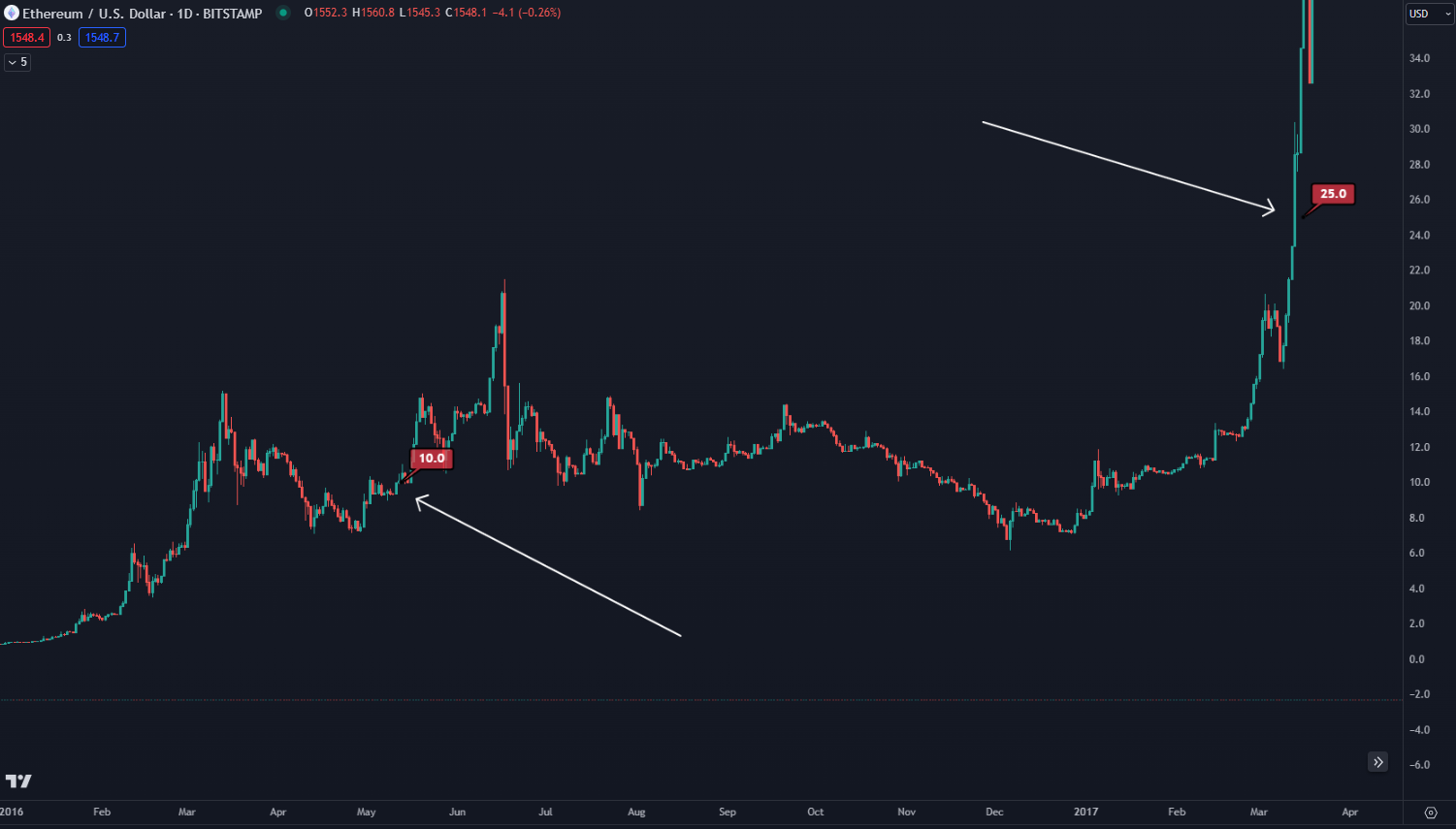 Netrvalo dlho a zrazu som sledoval svoj nákup 20 ETH každý deň. Vtedy som netušil, že existujú cykly kryptomien a že sme na počiatku nového bullrunu. Akonáhle cena dosiahla vyše 25 dolárov, predal som svoje Ethereum. Pomerne rýchlo som bol v profite 300 dolárov. To som však netušil, že som mohol svoj prvý nákup radšej držať niekoľko rokov. Všetko sa zdalo ružové a tak som sa presunul na vtedy pomerne známu burzu Poloniex. A tam sa to začalo.
