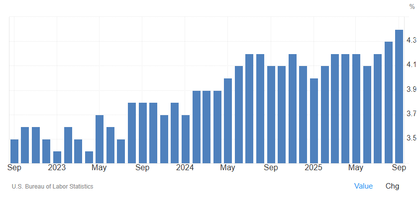 Rast nezamestnanosti USA za posledné 3 roky. Zdroj: tradingeconomics.com