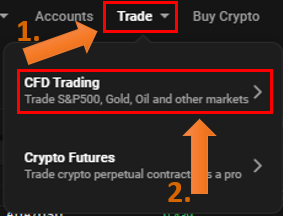 V tejto kapitole si ukážeme, ako obchodovať kryptomeny a iné aktíva na burze PrimeXBT. Stačí v hlavnom menu zvoliť Trade -> CFD Trading.