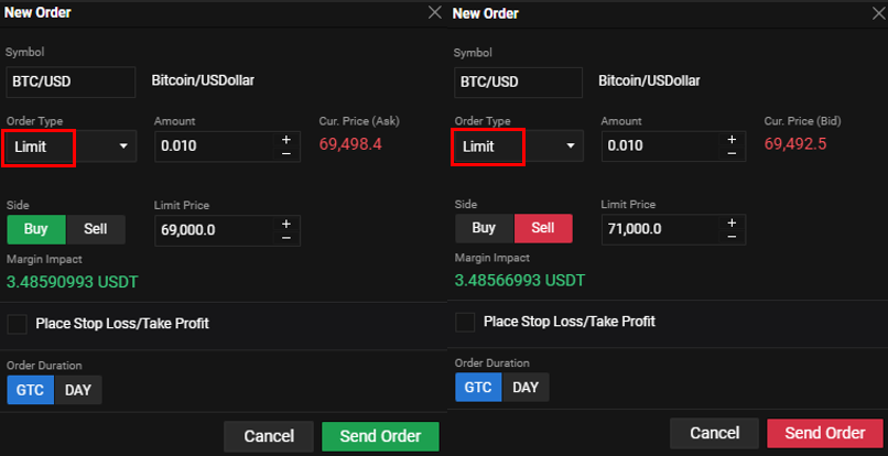 - Limit Price: Bitcoin stojí 69 500 USD. Nakupujeme, ak cena klesne na 69 000 USD a predávame, ak cena stúpne na 71 000 USD.