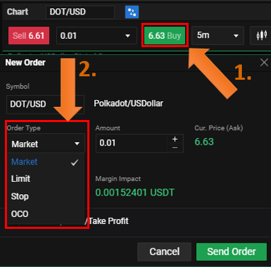- Market – najjednoduchší príkaz, ktorým zobchodujete kryptomenu za aktuálnu (spotovú) cenu.