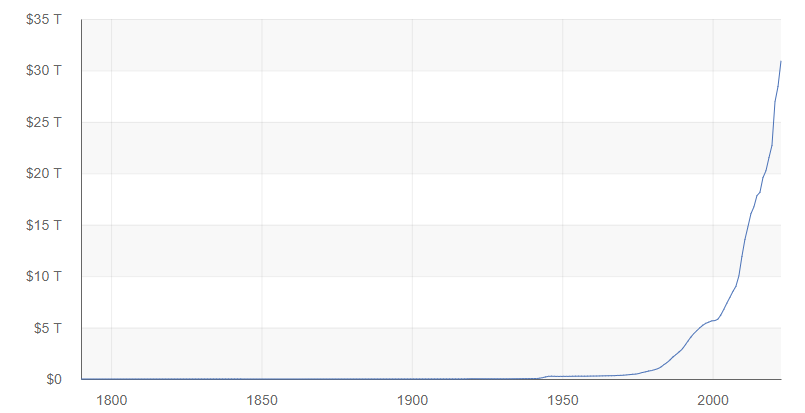 Situácia v USA je každý rok vážnejšia. Dlh Spojených štátov amerických sa vyšplhal už na 31,4 bilióna dolárov. Iba od koronakrízy, počas ktorej Americká centrálna banka tlačila rekordným tempom peniaze do obehu na záchranu firiem, dlh narástol o 5 biliónov.