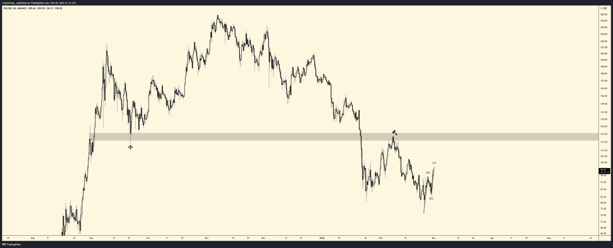 Ďalším projektom na zozname obchodníka je Solana. Capo tvrdí, že sa Solane nepodarilo obnoviť získanie rezistencie na úrovni 120 USD. Aktuálne je na určitom chvoste odrazu.