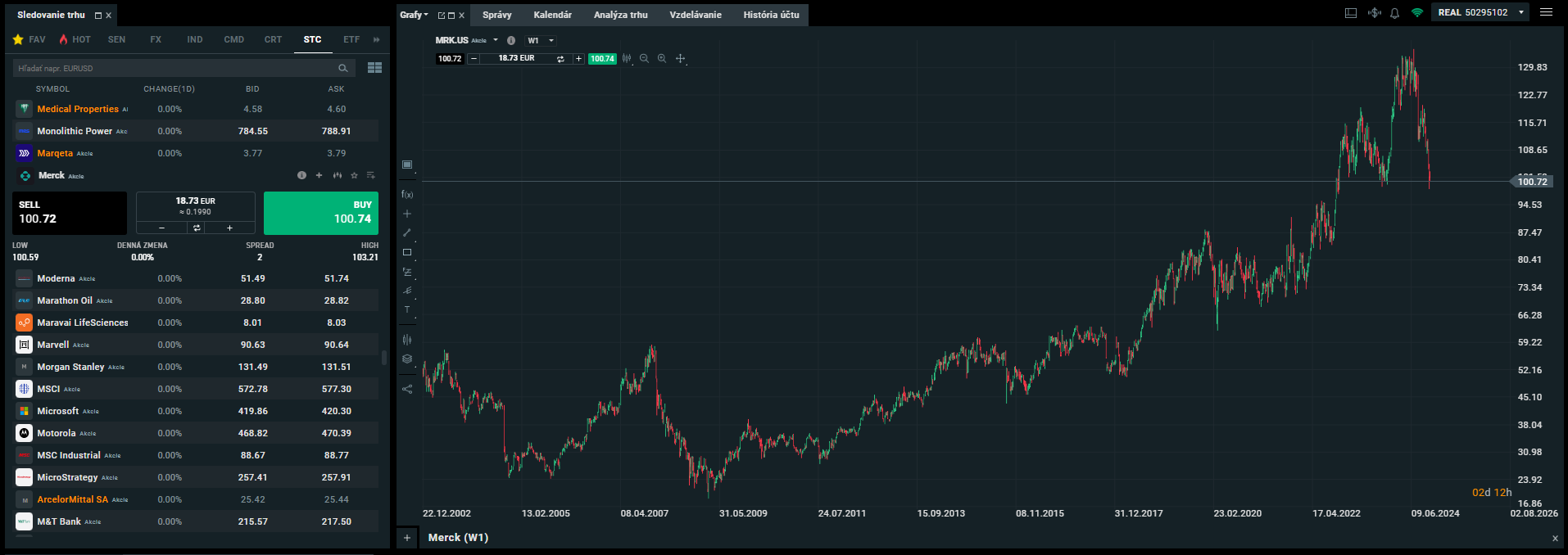 Akcie spoločnosti Merck (MKR) môžete nakúpiť na platforme XTB už dnes, a to už od malej mesačnej sumy, ako môžete vidieť na obrázku nižšie.