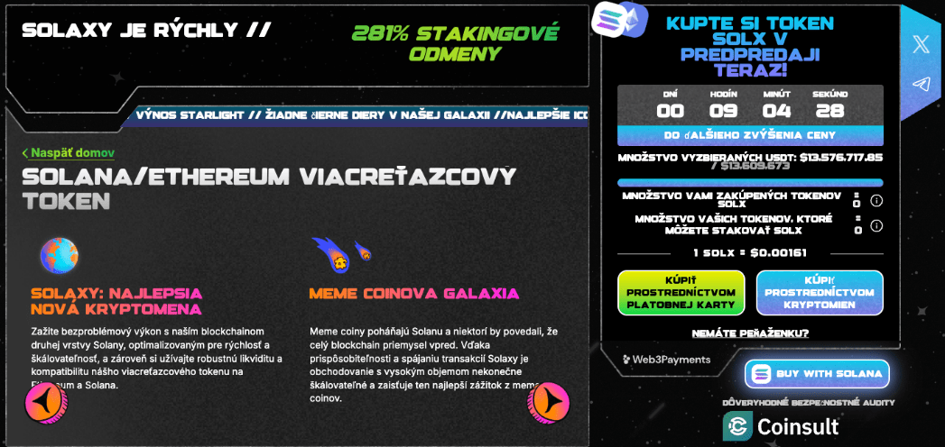 Keďže sa Solana opäť dostáva do centra pozornosti, ponuka inovatívnych vylepšení developerov projektu Solaxy by mohla byť presne tým, čo sieť Solana potrebuje. Nakoľko je projekt stále v predpredajnej fáze, investori majú vhodnú príležitosť zakúpiť si tokeny SOLX práve teraz.