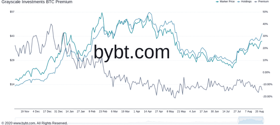 Sentiment inštitucionálnych investorov sa pomaly vracia v prospech portfólií s kryptomenami. Inštitucionálne nástroje, ako napríklad Grayscale Bitcoin Trust (GBTC), zaostávajú za rastúcimi spotovými cenami. To signalizuje, že hodnoty sa ešte nevrátili na úrovne predošlého býčieho trendu z apríla.